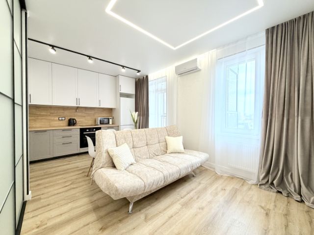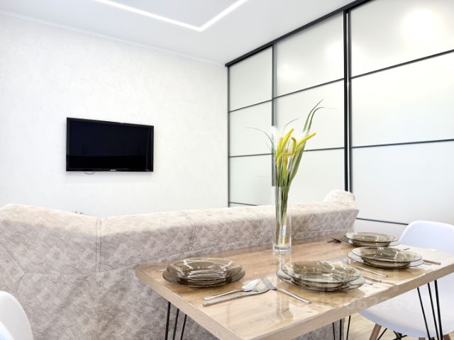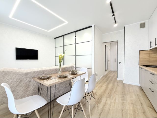 • Спальня и гостиная - двуспальная кровать с ортопедическим матрасом, СМАРТ-ТВ, двуспальный диван, кондиционер, Wi-Fi интернет, набор подушек 7070 и одеял, утюг, гладильная доска, сушилка для белья, фен и стиральная машина.