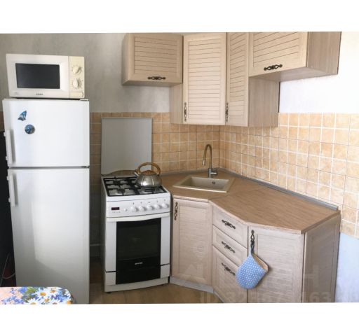 В квартире есть вся необходимая мебель на кухне и в комнате, а также техника — холодильник и стиральная машина. Планировка предусматривает совмещённый санузел с ванной, что удобно для проживания.