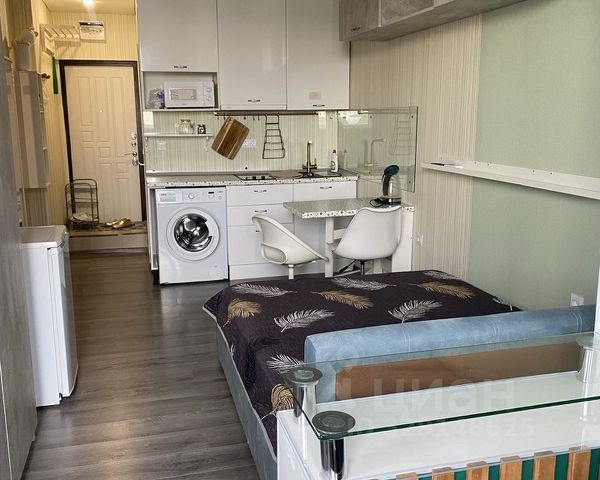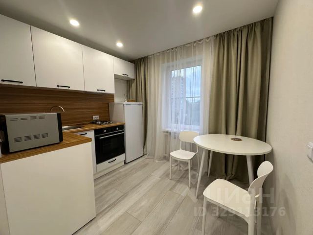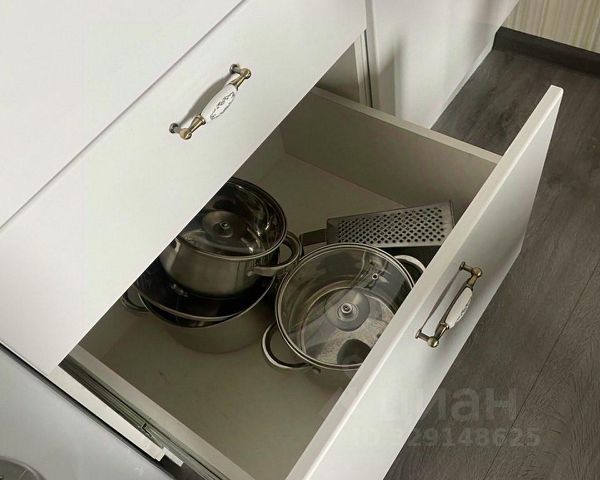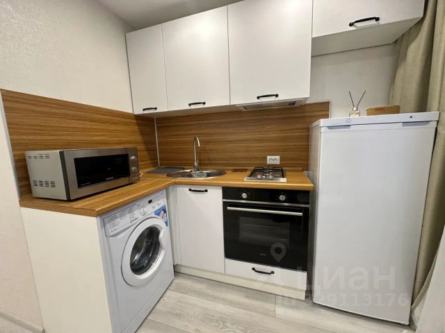 Также есть полный кухонный гарнитур, холодильник, микроволновка, индукционная плита, духовка, необходимый набор посуды, электр.чайник, чай и сладкий гостинец, предусмотрен водонагреватель. Из кухни выход на большую лоджию с прекрасным видом на лесопарк и мечеть.