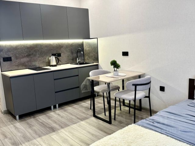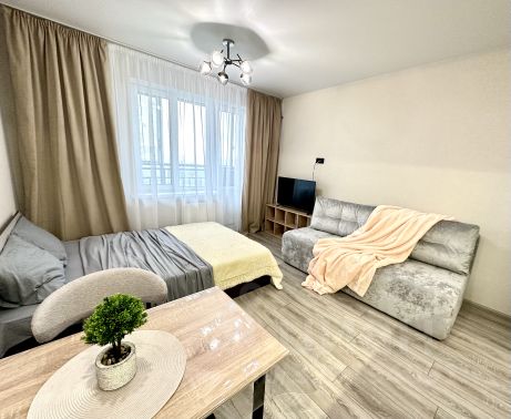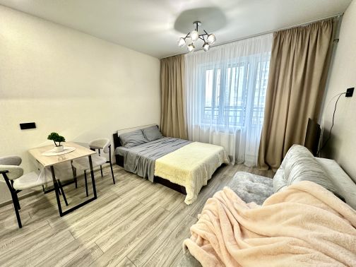 Добро пожаловать в уютный жилой комплексе светлая Долина сдается милая студия с новым ремонтом и с новой мебелью и техникой. К вашим удобствам: двуспальная кровать, диван, оборудованная мини кухня, кондиционер, водонагреыатель, Wi fi, смарт тв, посуда, постельные принадлежности Идеальный парк для прогулок на территории комплекса, где можно устроить пикник, покататься на велосипеде, и просто наслаждаться природным ланшафтом, кроме того вас порадует разнообразие магазинов и кафе, быстрый заезд и выезд из города, транспортная развязка во все стороны, до центра 15-20 минут. Также можем разместить компанию из 8 человек, аналогичная студия на этаже есть рядом. Добро пожаловать! Цена зависит от сезона и количества проживающих