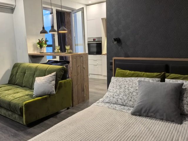 Светлая и уютная студия в современном ЖК Яркий Представляем вашему вниманию просторную и комфортабельную студию, расположенную в одном из самых перспективных жилых комплексов города. Квартира выполнена в современном стиле с продуманной планировкой, включающей функциональную кухню-гостиную и отдельную уютную спальню. Полностью оборудованная квартира Пространство полностью готово к заселению и оснащено всем необходимым для комфортного проживания: Современная техника: телевизор с плоским экраном, кондиционер для поддержания оптимального микроклимата, вместительный холодильник, стиральная машина с различными режимами стирки, электрическая плита, утюг и водонагреватель для бесперебойной подачи горячей воды Посуда и принадлежности: полный набор кухонной утвари, включая посуду для приготовления и сервировки, столовые приборы и кухонные принадлежности Спальные места: удобная двуспальная кровать с ортопедическим матрасом и комфортабельный раскладной диван, рассчитанные на размещение до трех человек Рабочая зона: эргономичный рабочий стол для удаленной работы или учебы wi-fi Идеальное решение для: командированных сотрудников Молодых пар, ценящих комфорт и современный стиль Семей с детьми, ищущих безопасное и удобное жилье Гостей города, желающих остановиться в комфортном месте Преимущества расположения: Транспортная доступность: метро в пешей доступности, остановки общественного транспорта всего в 3 минутах ходьбы Близость к центру: всего 20 минут на автомобиле до исторического центра города Парковка: большая наземная парковка, удобная для гостей и жильцов Инфраструктура: в пешей доступности гипермаркет Лента, на первом этаже дома расположены магазины Пятерочка, пекарня и уютные кофейни Дополнительные преимущества: Свежий современный ремонт Качественная отделка помещений Чистота и уют Благоустроенный двор Безопасный район Квартира идеально сочетает в себе комфорт городской жизни и удобство современного жилья. Здесь каждый найдет всё необходимое для комфортного проживания и отдыха.