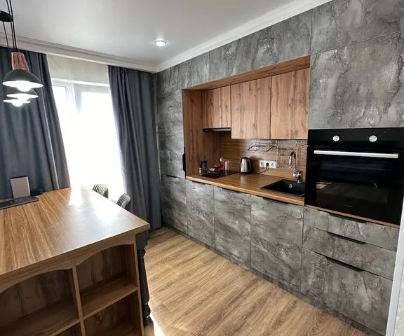 Кухня оснащена газовой плитой с духовым шкафом, СВЧ-печью, электрическим чайником, холодильником, обеденным столом и гарнитуром. В наличии посуда для приготовления еды, сервиз и приборы на 4 персоны.
