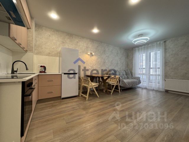 В квартире сделан современный евроремонт. Вся необходимая мебель и техника уже есть: на кухне-гостиной удобно расположена мебель, раскладной диван,жк телевизор,обеденный стол,стулья,кухонный гарнитур со встраиваемой техникой,в комнате — комфортная обстановка,двуспальная кровать 1,40,шкаф-купе.Из техники в вашем распоряжении холодильник, телевизор и стиральная машина. Ванная комната оборудована ванной, что обеспечит комфортное пребывание. Есть одна лоджия, где можно наслаждаться свежим воздухом и видом окрестностей.
