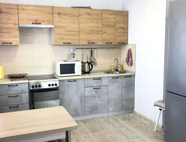В квартире сделан аккуратный ремонт, который создаёт уютную атмосферу. Она полностью меблирована и готова к проживанию: есть удобный диван, кровать, шкафы и обеденный стол. Кухня оснащена всей необходимой техникой, включая холодильник, плиту и микроволновую печь. Санузел раздельный, с современной сантехникой.