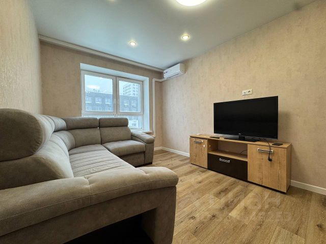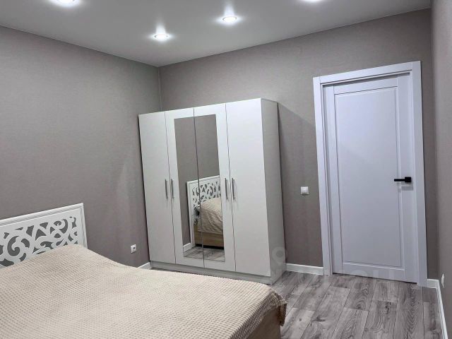 Сдается уютная квартира на длительный срок. В квартире выполнен свежий евро ремонт, что создает атмосферу уюта и комфорта. Просторная кухня площадью 15 м² оснащена всей необходимой техникой, включая холодильник и микроволновую печь. В гостиной установлен телевизор и удобный диван, а также обеденный стол с креслами. Из мебели в комнате шкафы и кровать. В спальне есть кондиционер и просторный шкаф. Санузел совмещенный, оборудован современной сантехникой и стиральной машиной. В прихожей предусмотрена гардеробная. Квартира расположена на третьем этаже кирпичного дома 2017 года постройки. Дом оснащен пассажирским и грузовым лифтами. Во дворе закрытая территория с спортивной площадкой и наземной многоуровневой парковкой.