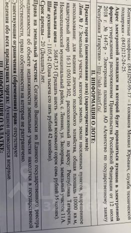 Лот 1: Земельный участок, категория земель: земли населенных пунктов, разрешенное использование: для ведения личного подсобного хозяйства, общая площадь 10000 кв.м, кадастровый номер 16:31:050104:302, расположенный по адресу: Р...