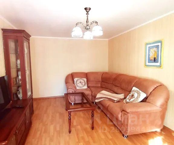 Хорошая мебель, два дивана, на полу ламинат. Люстры на потолках.