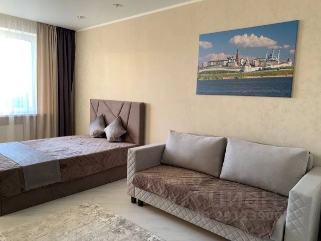 Однокомнатные апартаменты с дизайнерским ремонтом, с панорамным видом на Кремль и реку Казанку. Вместимость до 4 гостей: двуспальная кровать, диван и 2 кресла-кровати.
