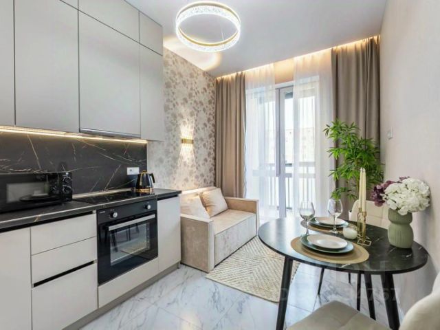 - Газовая плита, духовой шкаф, электрический чайник, микроволновая печь, холодильник, капсульная кофемашина