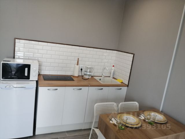 - отдельная кухонная зона оборудована вместительным кухонным гарнитуром с мойкой, индукционной плитой и электрическим чайником